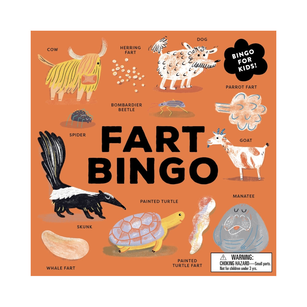 Explore the silly side of nature with 24 animals and their uniquely shaped, sized and coloured farts featured in this family bingo game. With hilarious illustrations, fascinating farty facts and quick to learn rules, Fart Bingo will have you giggling and guffawing in no time.