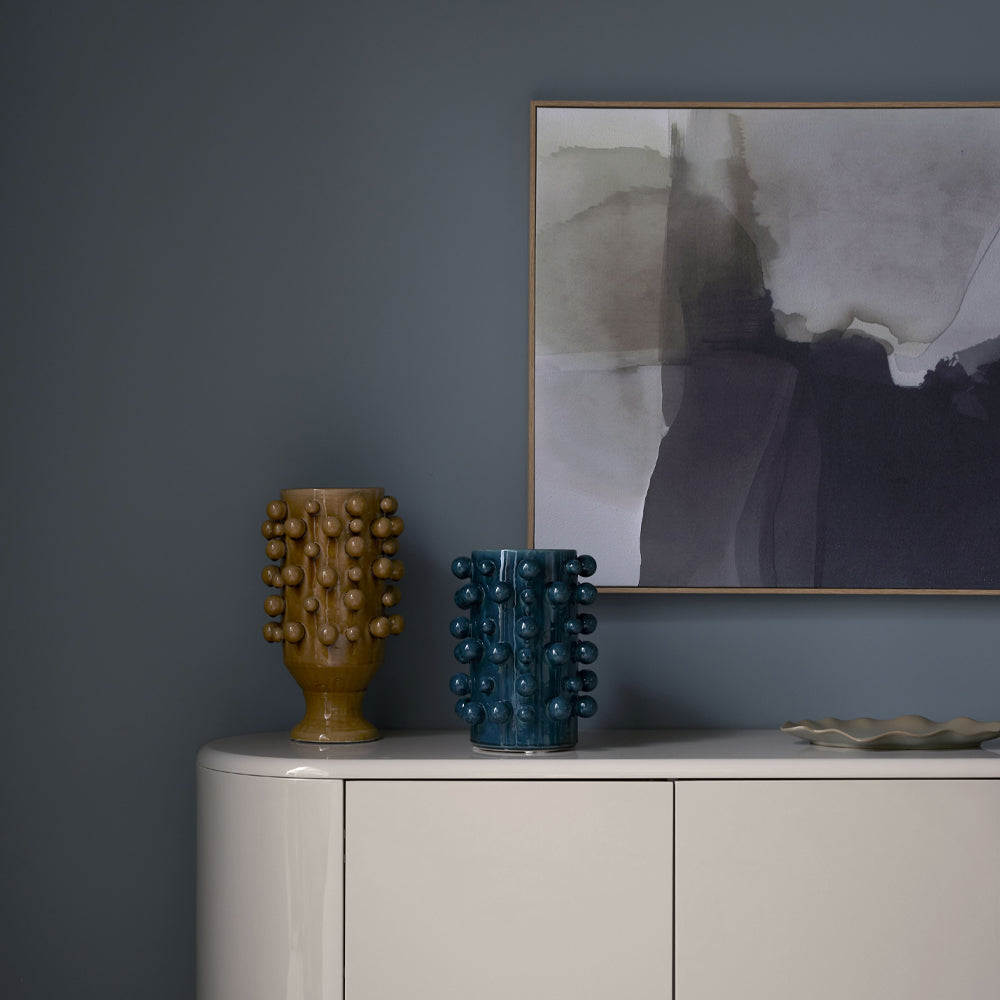 It’s easy to make a statement with the Odin Vase. Its cylindrical silhouette is adorned with bubble ornaments for a dramatic, modern edge.