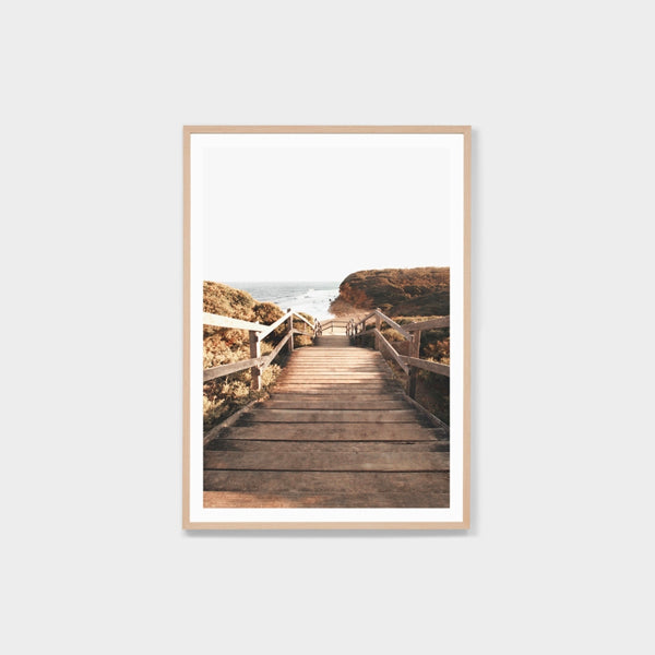 Add the perfect finishing touch to your space with this rustic photographic print, featuring a boardwalk at Bells Beach, Victoria.