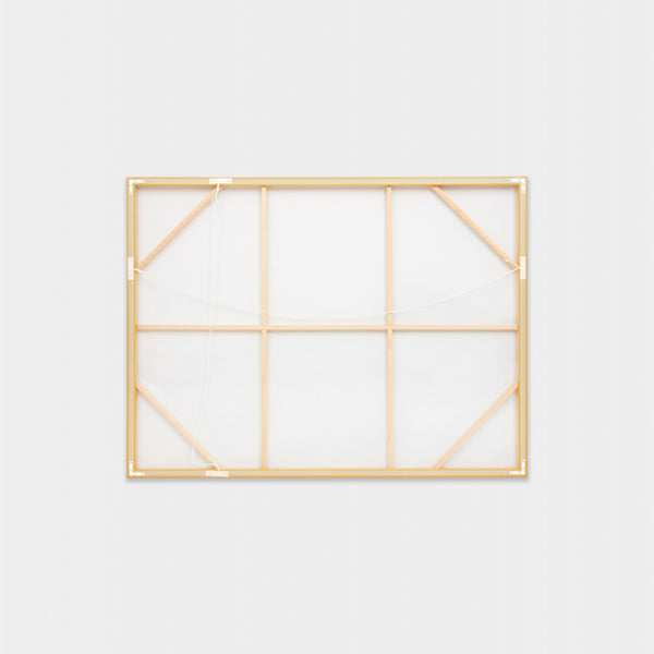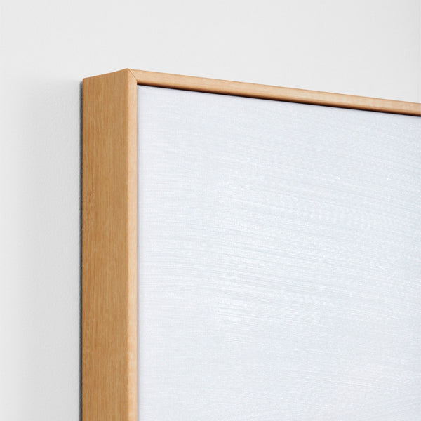 Stretched cotton blend canvas, light timber look synthetic outer frame, pine stretcher backing frame.