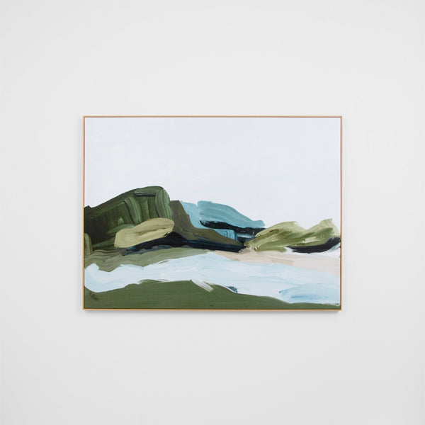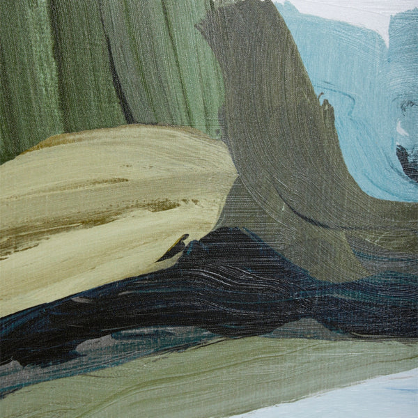 In soothing shades of greens and blues, this abstract landscape piece will add an instant sense of calm to your space.