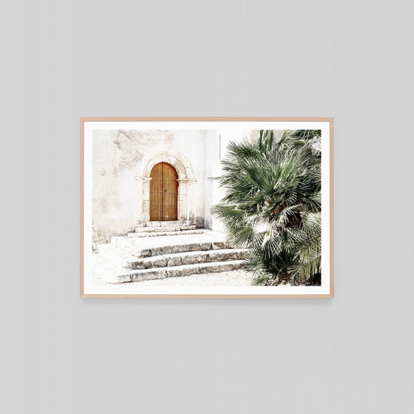 A striking photographic print featuring an entrance to a building in Barcelona, Spain.