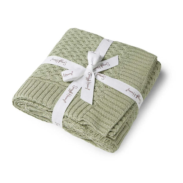 With a classic diamond knit design, it is bordered with a thwartwise stitch and measures a large 120cm x 100cm in size. Its soft Dewkist colour will pair beautifully with many of our other Snuggle Hunny products, allowing you to curate the perfect matching gift for a new little friend or expecting parent.