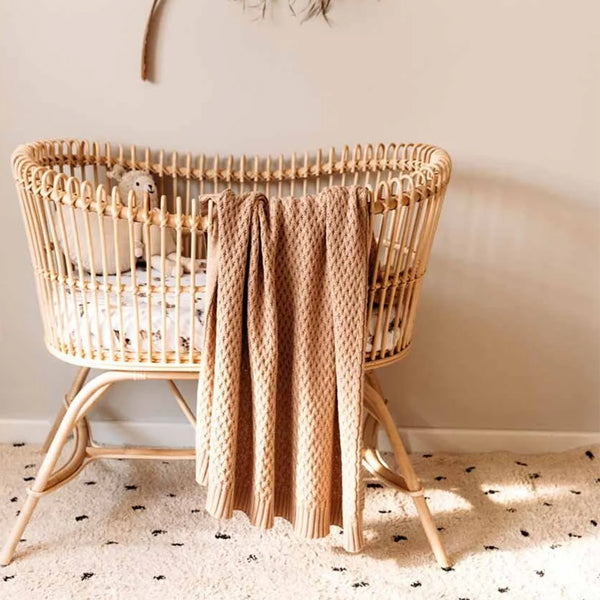Suitable for babies, toddlers + children of all ages, your Organic Knit Blanket can be used to keep your baby warm in the basinet, as a snuggly blankie, used while out and about or simply as the perfect decor accessory for your nursery.