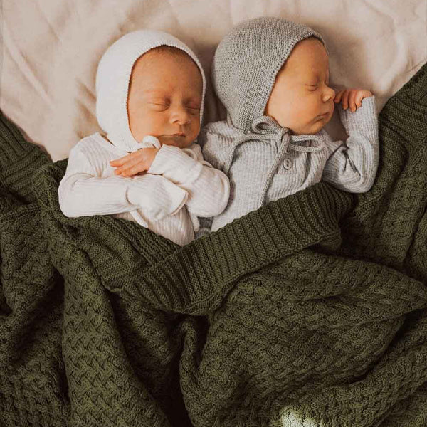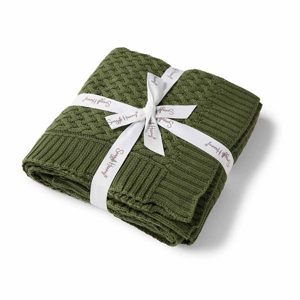 With a classic diamond knit design, it is bordered with a thwartwise stitch and measures a large 120cm x 100cm in size. Its lovely Olive colour will pair beautifully with many of our other Snuggle Hunny products, allowing you to curate the perfect matching gift for a new little friend or expecting parent.