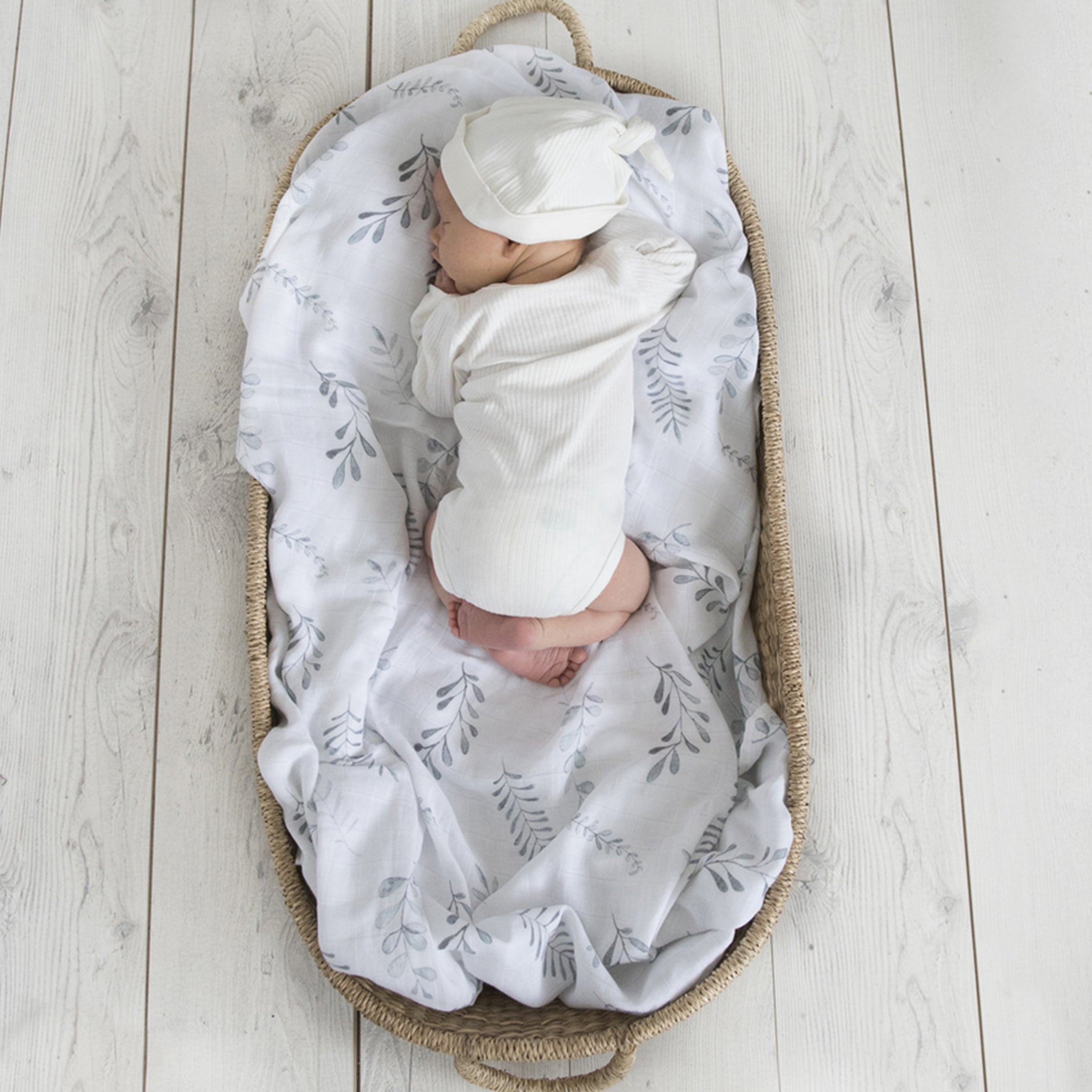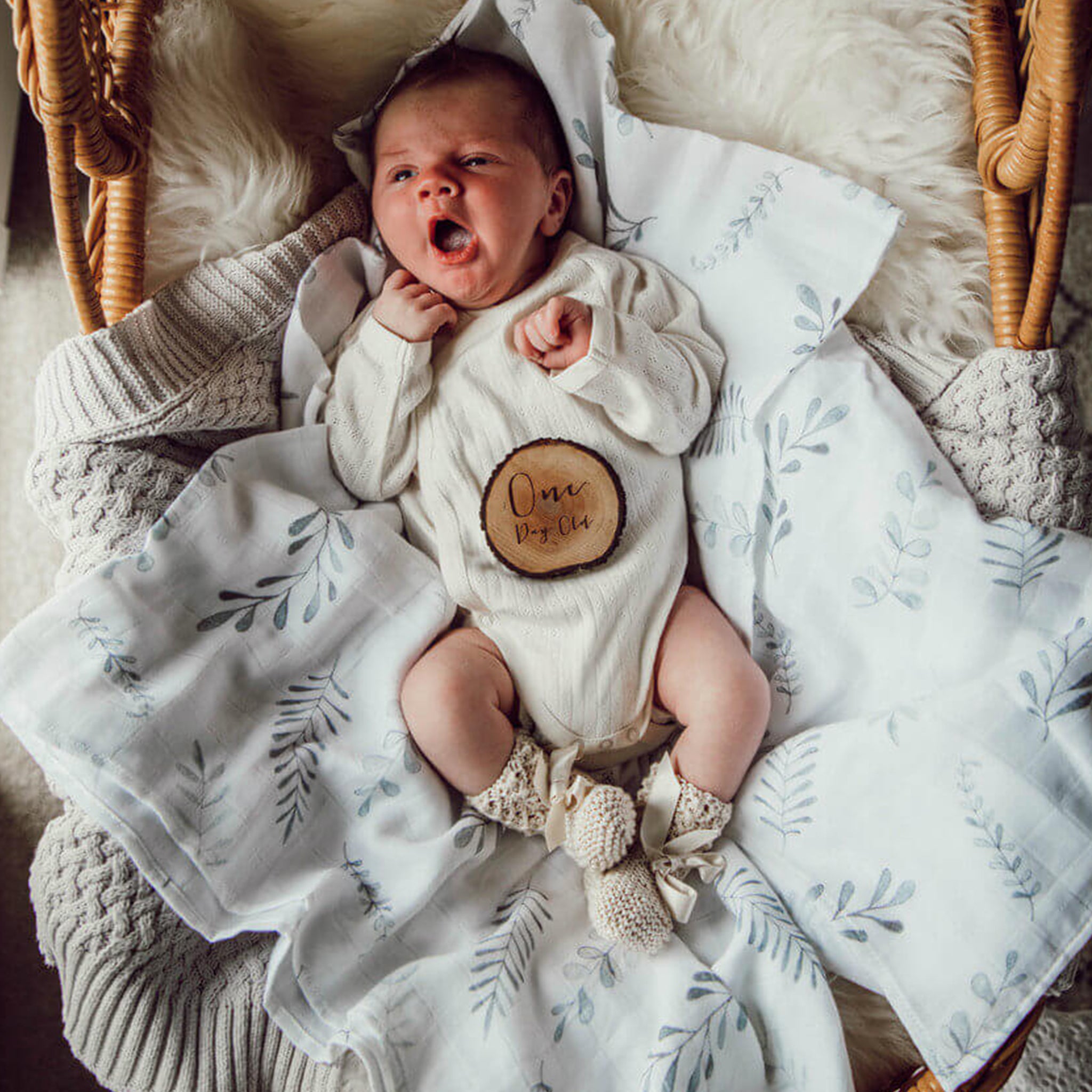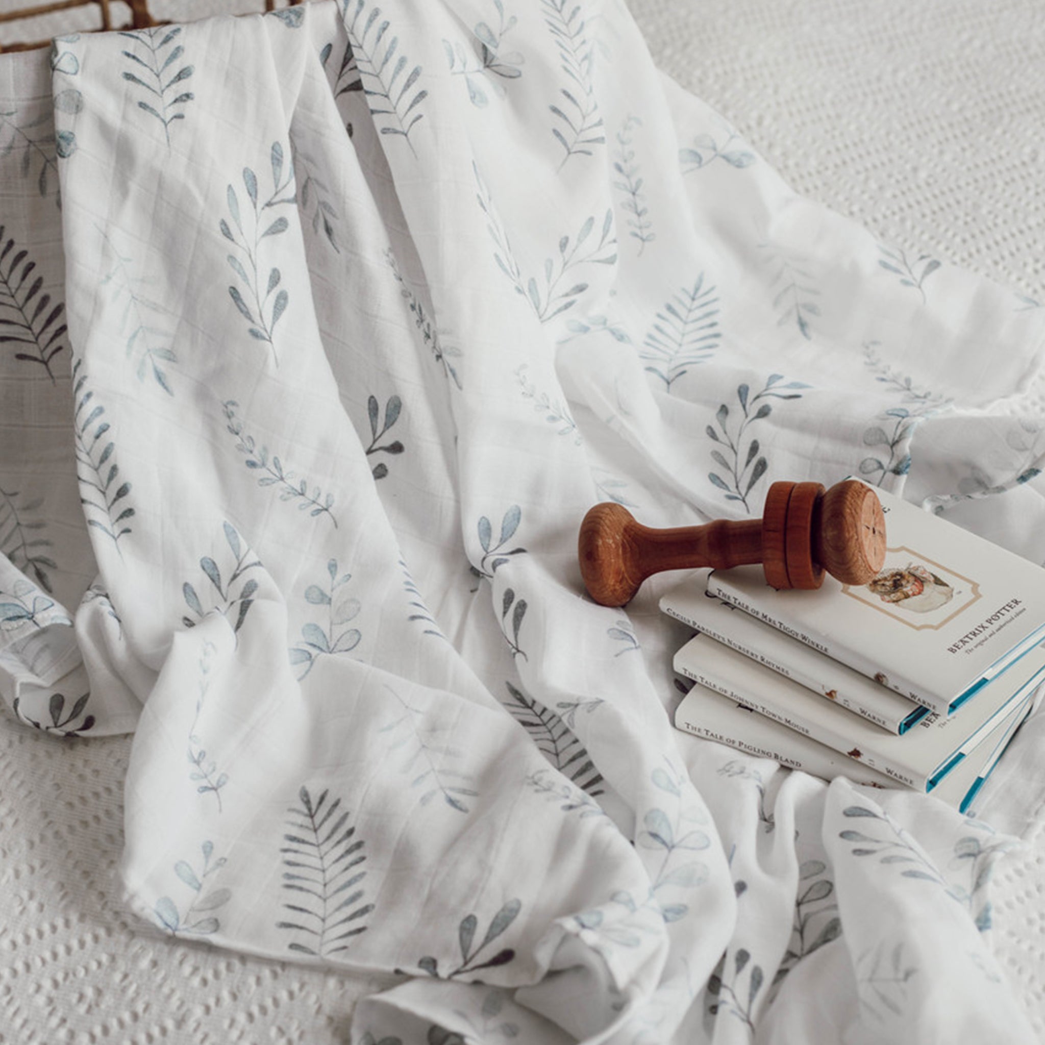 Our soft, multi-use Organic Muslin Wrap in the soft painterly Wild Fern design, is made from the finest quality organic cotton muslin. Lightweight, breathable and easy to use, they are super soft and gentle on baby’s skin.
