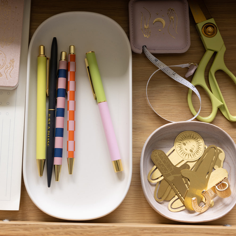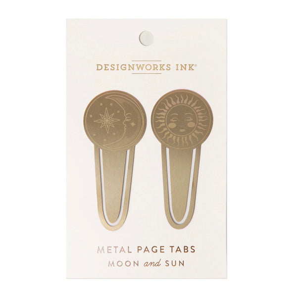 An fun way to mark your page while you study or plan, these metal page tabs come in sets of two coordinating moon and sun designs. Sure to catch your eye, the stainless steel tab with coated gold finish simply slides onto the top of the page to mark your place in your favorite book or journal.