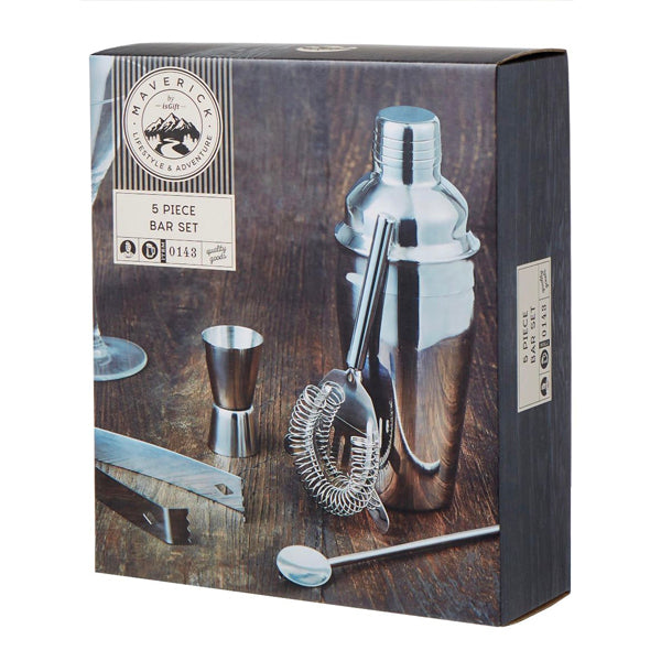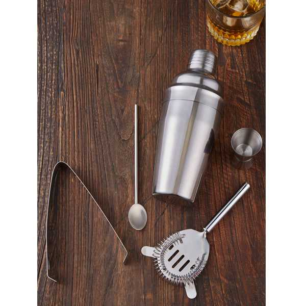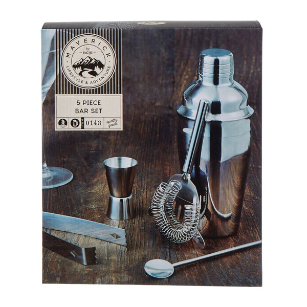 This 5-Piece Bar Set includes a 500ml cocktail shaker with a removable lid, jigger, strainer, mixing spoons, and tongs. Made from stainless-steel, it’s durable and will last many years to come.