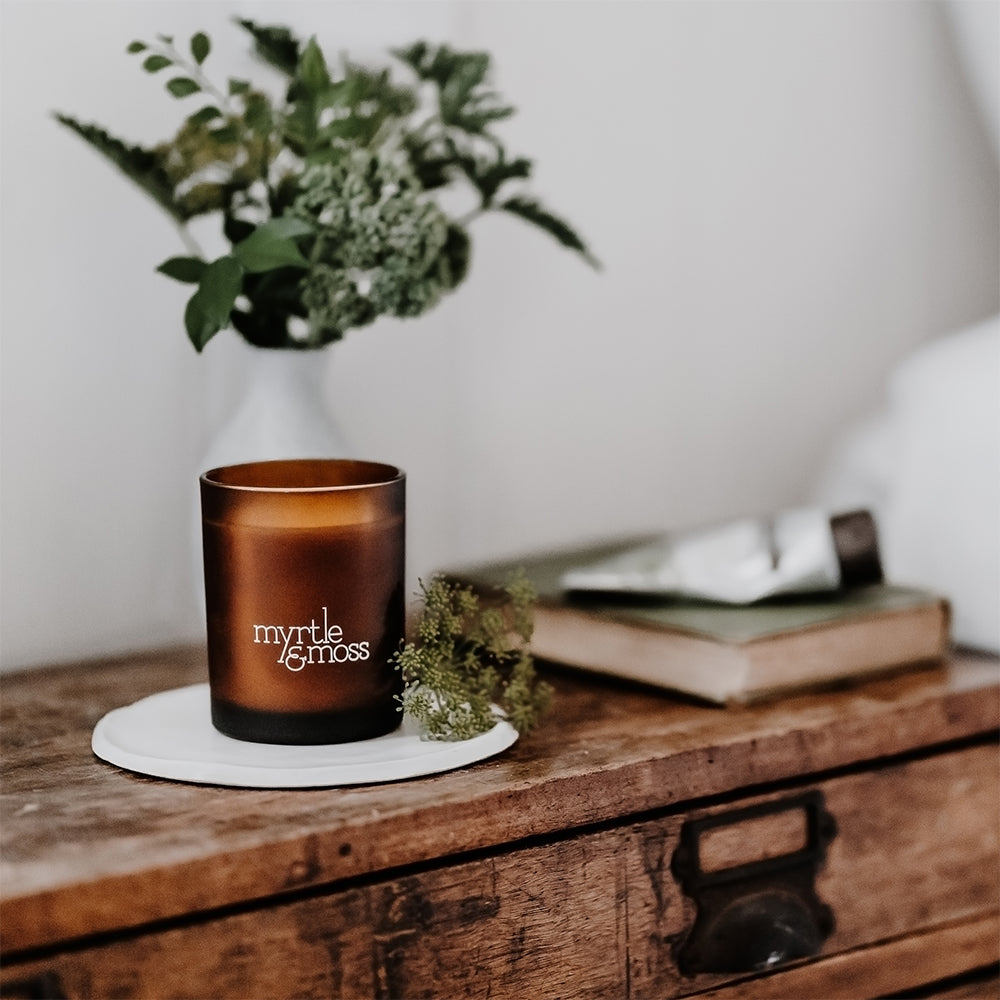 Scented with crisp and vibrant pure essentials oils, this glass Mandarin, Lemon Myrtle and Orange Peel pure soy wax candle will burn for 50 hours.