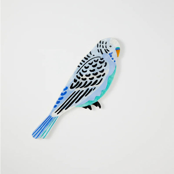 Introducing our Aerial Budgie Wall Art, a playful addition to your space. Crafted from wood and capiz shell, this wall tile depicts the iconic Budgie in all its vibrant glory. With its bright blue plumage and charming demeanor, this piece captures the essence of Australia's beloved budgerigar.