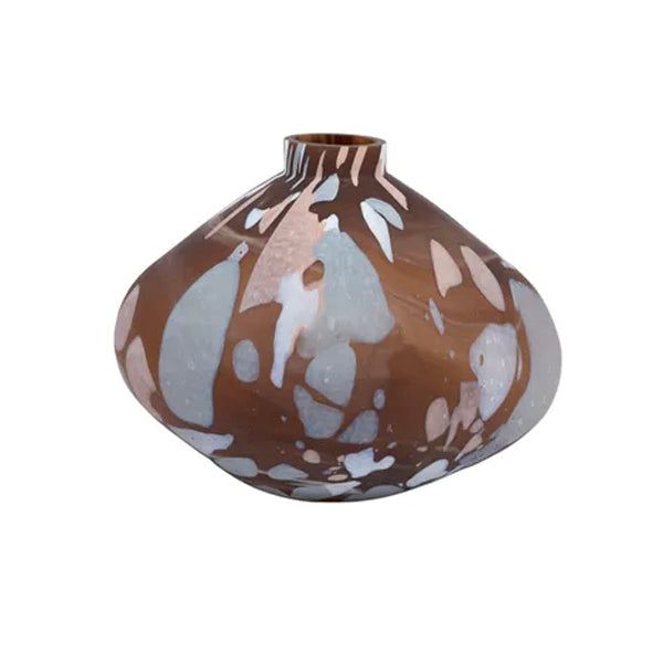 The Agra Glass Vase is strikingly unique. Featuring abstract markings in a moody palette on handblown glass, its size and shape makes Agra weighty, wonderful and a work of art in itself.