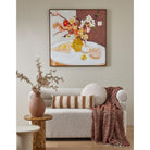 Add colour to any space with the Aimi oil painting. Featuring a floral still life in a walnut style frame.
