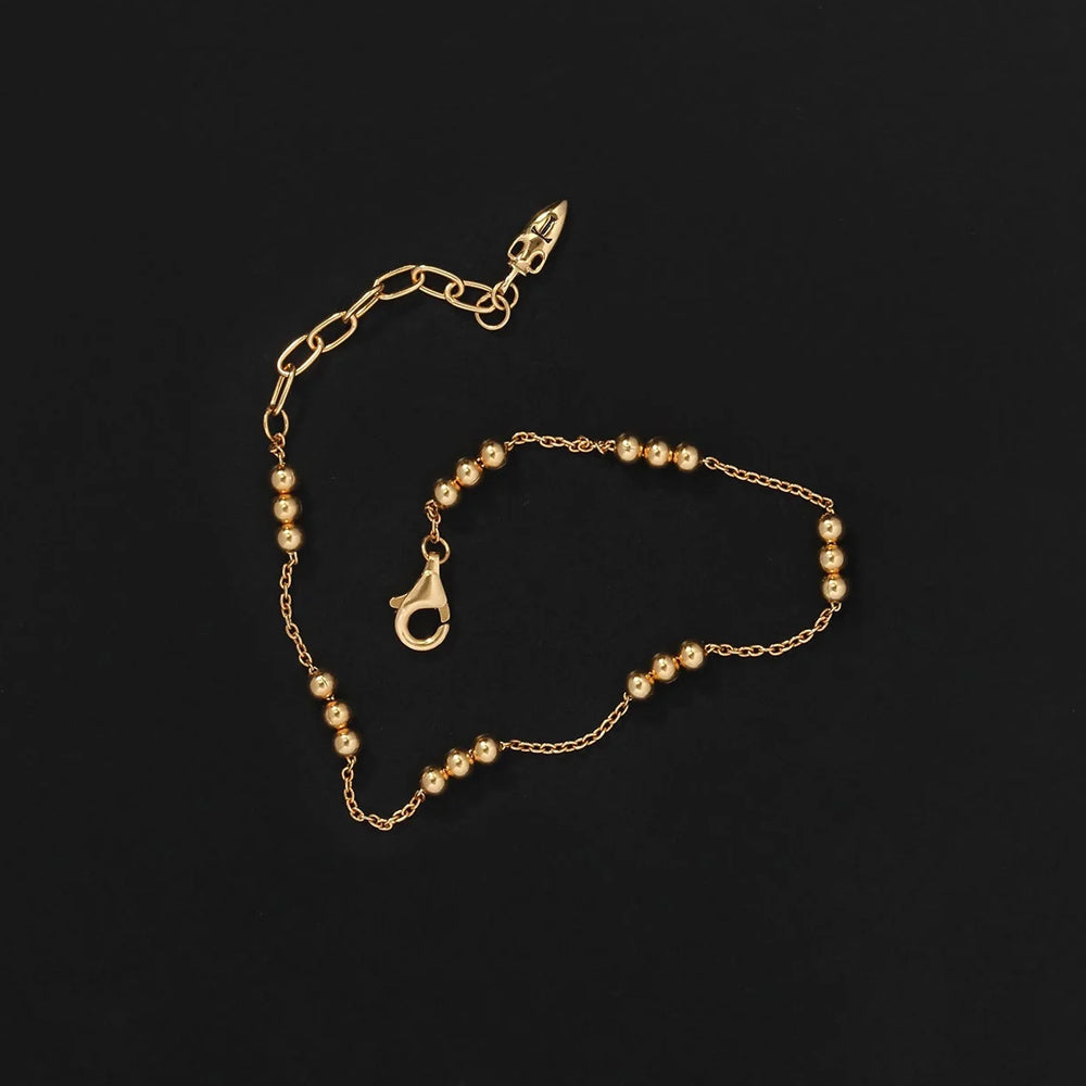 A fine cable satellite chain in 18k gold vermeil, the minimalist Alba Station Bracelet features a trio of polished beads in a rhythmic sequence.