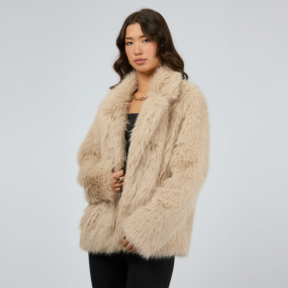 Meet the Angela Fur Coat (Jorge Clothing), your new statement coat this winter. Made from luxe faux fur the Angela coat is cute and cozy, giving the ultimate cool girl vibes that can take you from day to night. Wear it with jeans and sneakers for an off duty look or pair it with a heel for a glam night time look.