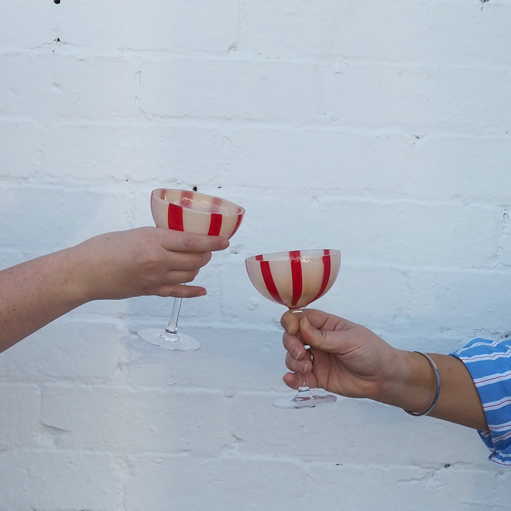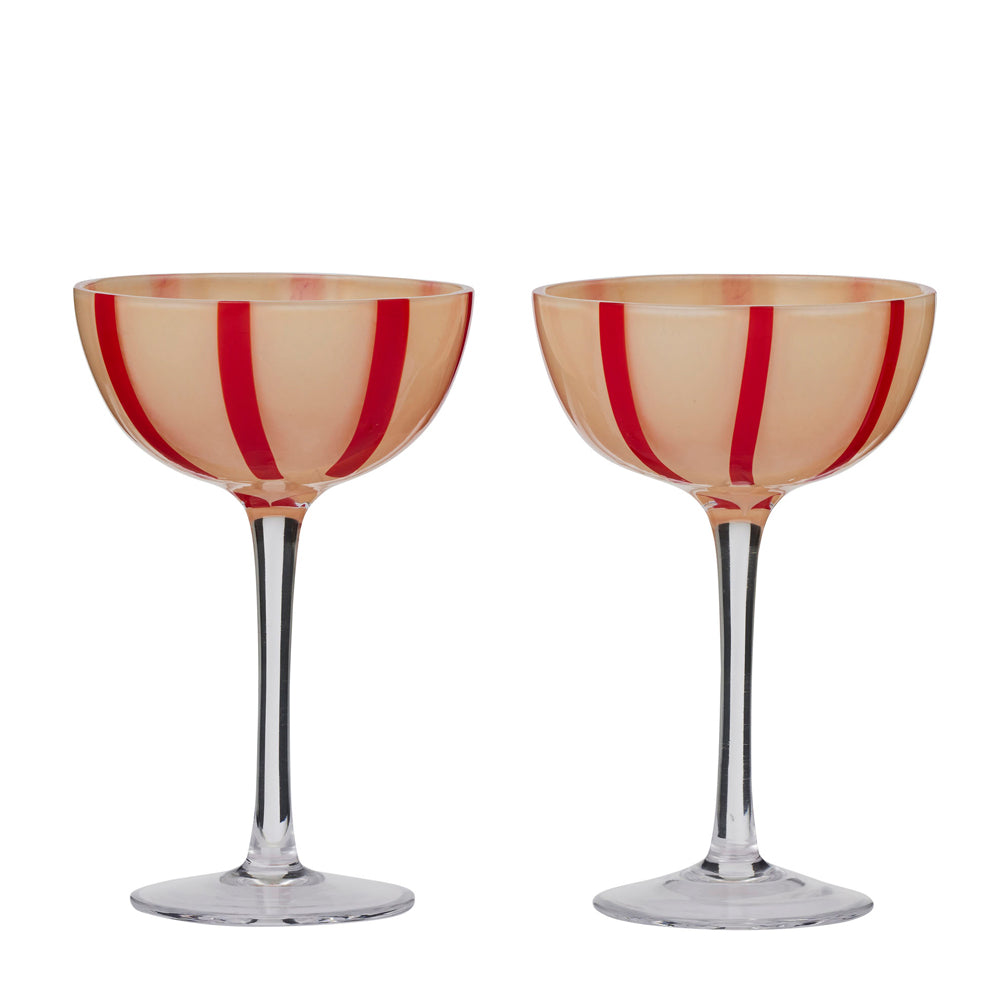 In a candy inspired red and peach colour combo, the Aperitivo Coupe Glasses are feminine and fun.