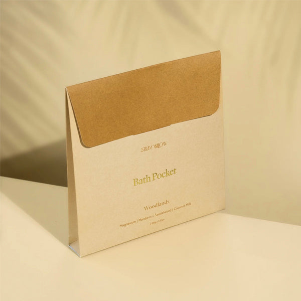 Stray Willow's Bath Pocket in Woodland is a giant tea bag for the bath that creates a relaxing self-care experience. It works its magic by infusing the water with magnesium, antioxidants, and skin softening oils that work to nourish your skin, soothe and relax muscle tension, and give your soul a much-needed rest.