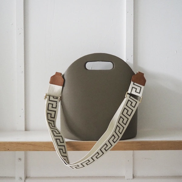 Paired with the beautifully on-trend Moss Bag is the Creme + Moss Key shoulder strap, crafted from custom webbing and finished with silver hardware.