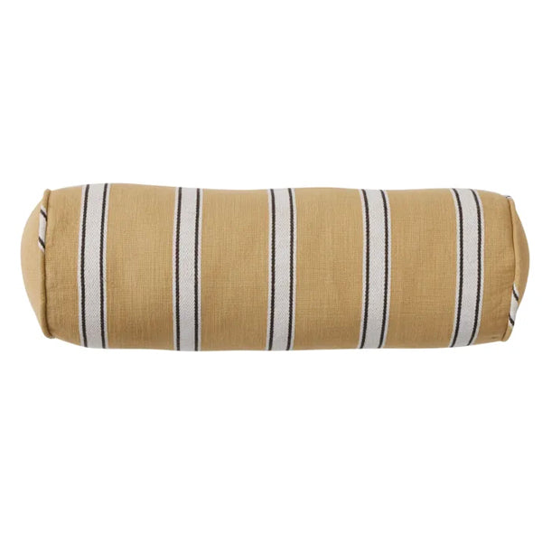 Bolsters are back in a big way. The Camella Bolster cushion, with a buttery base, black and white stripe panels and piping detail at each end, makes the perfect statement to any bed or occassional chair.