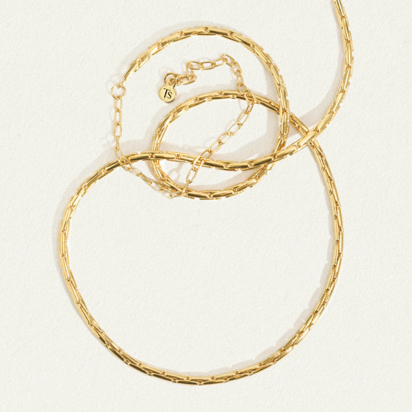 Symbolizing adaptability, this chain necklace embodies supple movement. A poetic tribute to the beauty found in graceful transitions.
