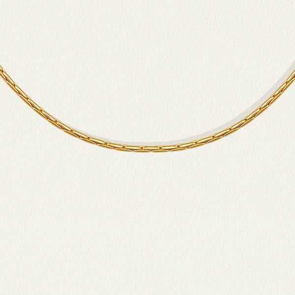 Evoking grace and fluidity, the Caria Necklace embraces the essence of flowing rivers. Showcasing an 18k gold vermeil round cable chain with interlocking links, creating a captivating snake chain effect.
