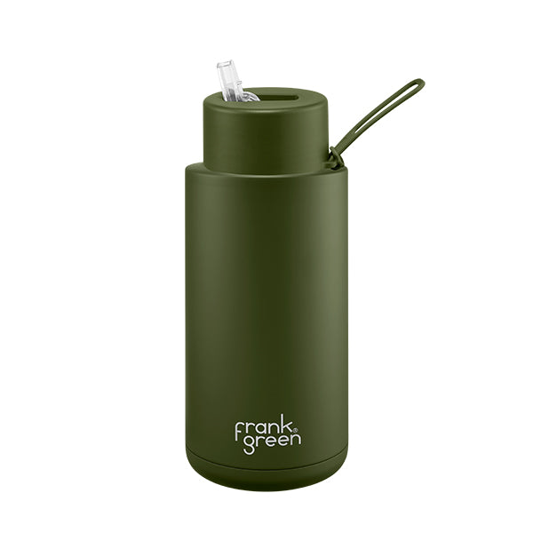 Ceramic Reusable Bottle + Straw Lid (1L) - Khaki