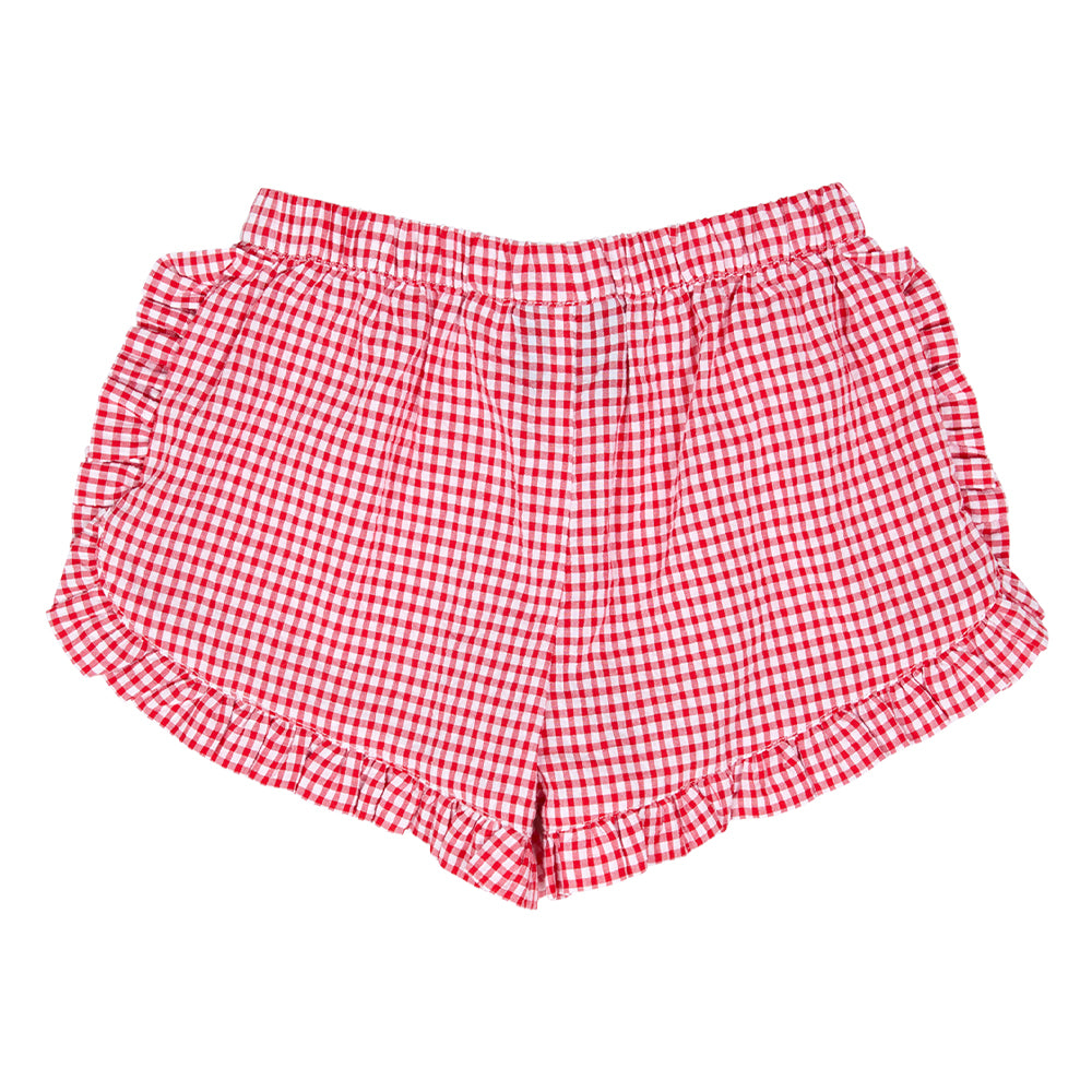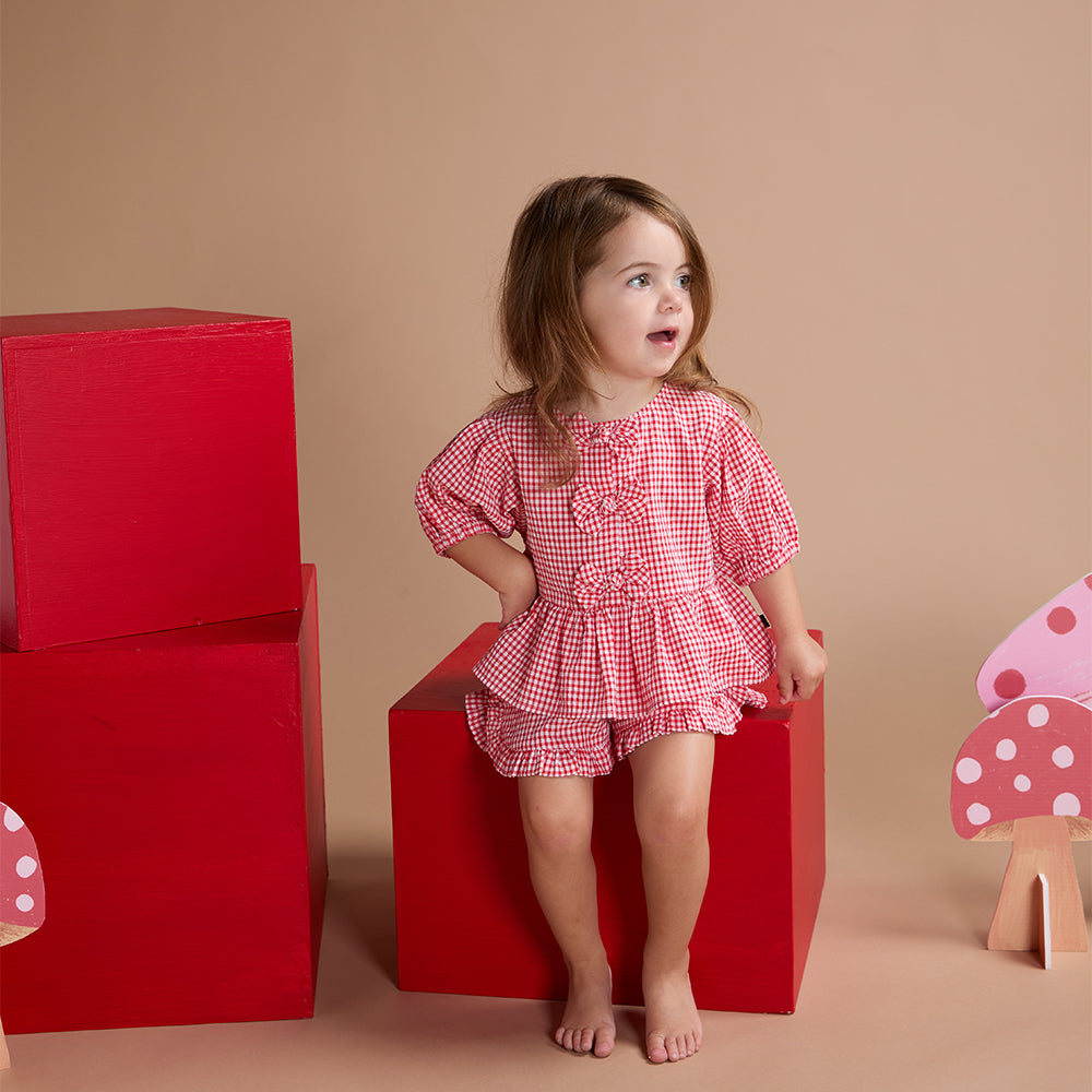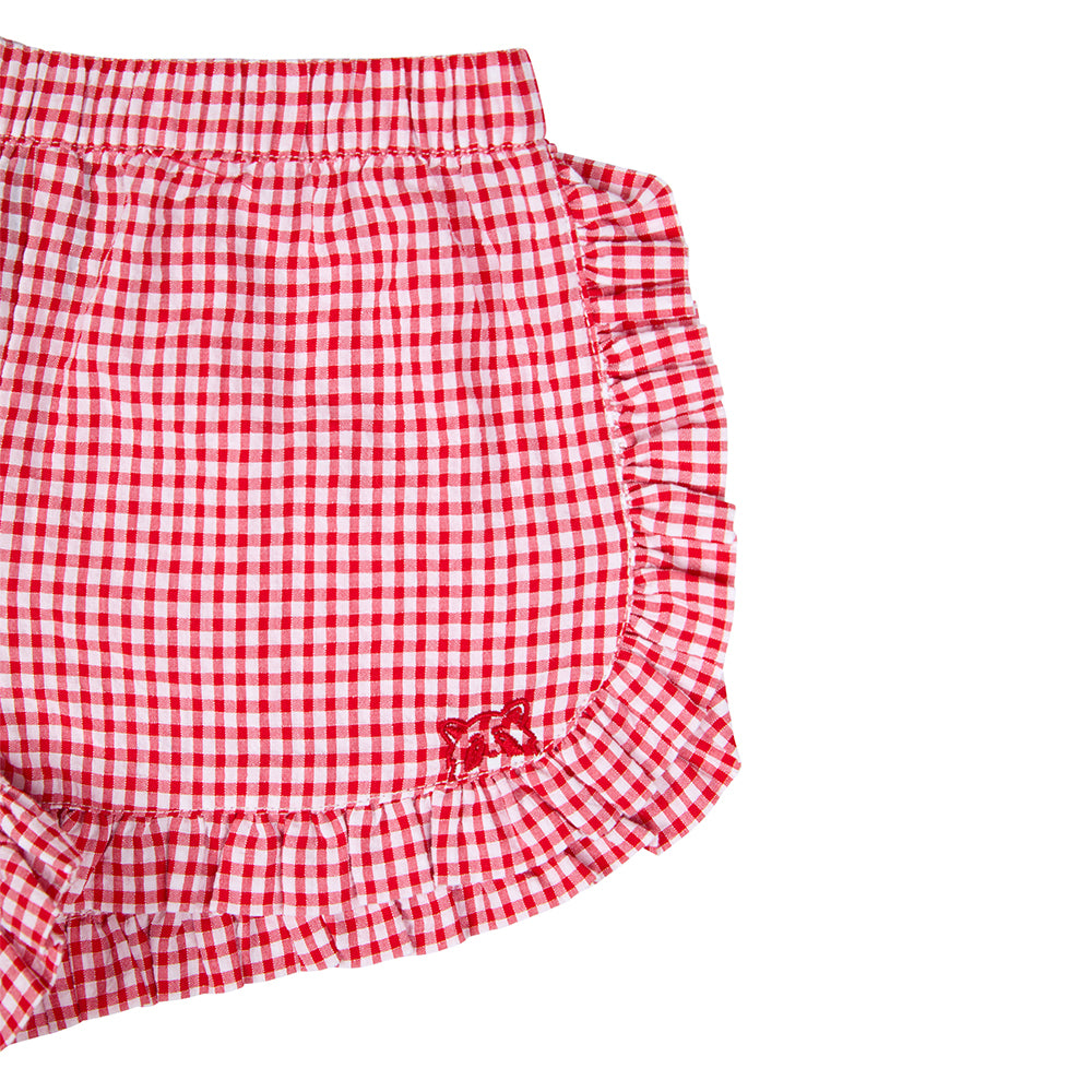 The Checkered Short (Animal Crackers) is a super cute piece for your tiny human this summer! Made from 100% cotton red check fabric, the short features side and hem frill detail, an elastic waist and branded logo embroidery. Worn with a simple top, or pair back with the Checkered Top for that extra cute summer outfit.
