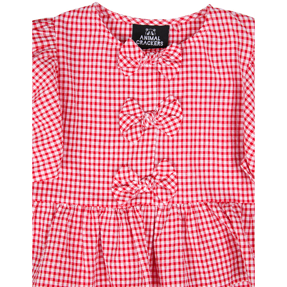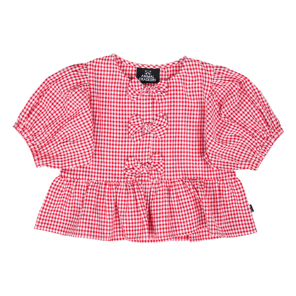 The Checkered Top (Animal Crackers) is the most adorable piece for your tiny human this summer! Made from 100% cotton red check fabric, this top features centre front bow detail, puff sleeves and gathered hem panel. Paired back with the Checkered Short, it will be the ultimate summer outfit.