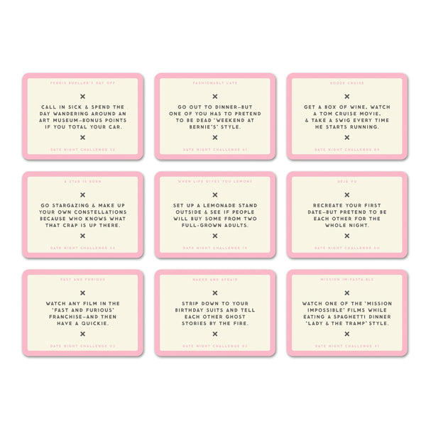 It’s hard enough to pick a place to eat, let alone come up with something unique and fun to do on date nights. Date Night Challenges is the perfect accessory to get the ball rolling.