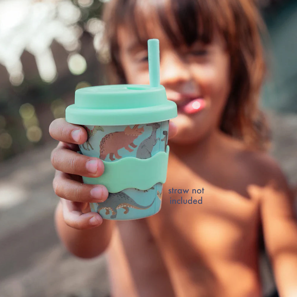 The raaawsome cup for dino-mite kids. Perfect for tiny adventurers hands, the Dino Babychino Cup is a bamboo based cup with a tight seal silicone lid, ideal for water on-the-go, babychino, hot chocolate, or even espresso and piccolo for the big kids!