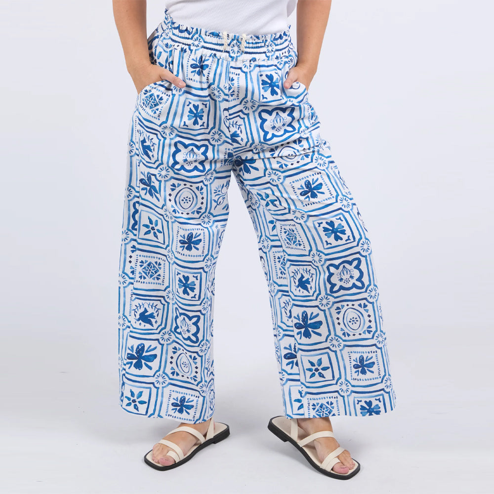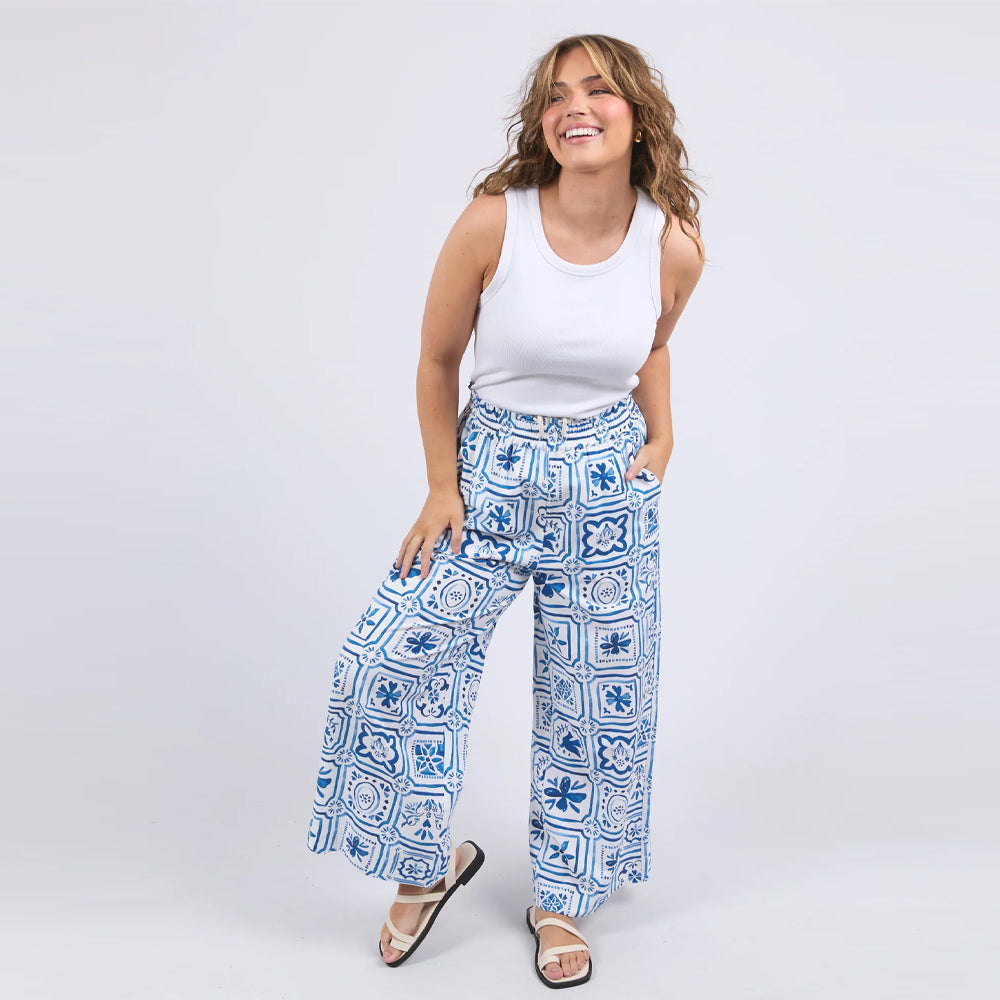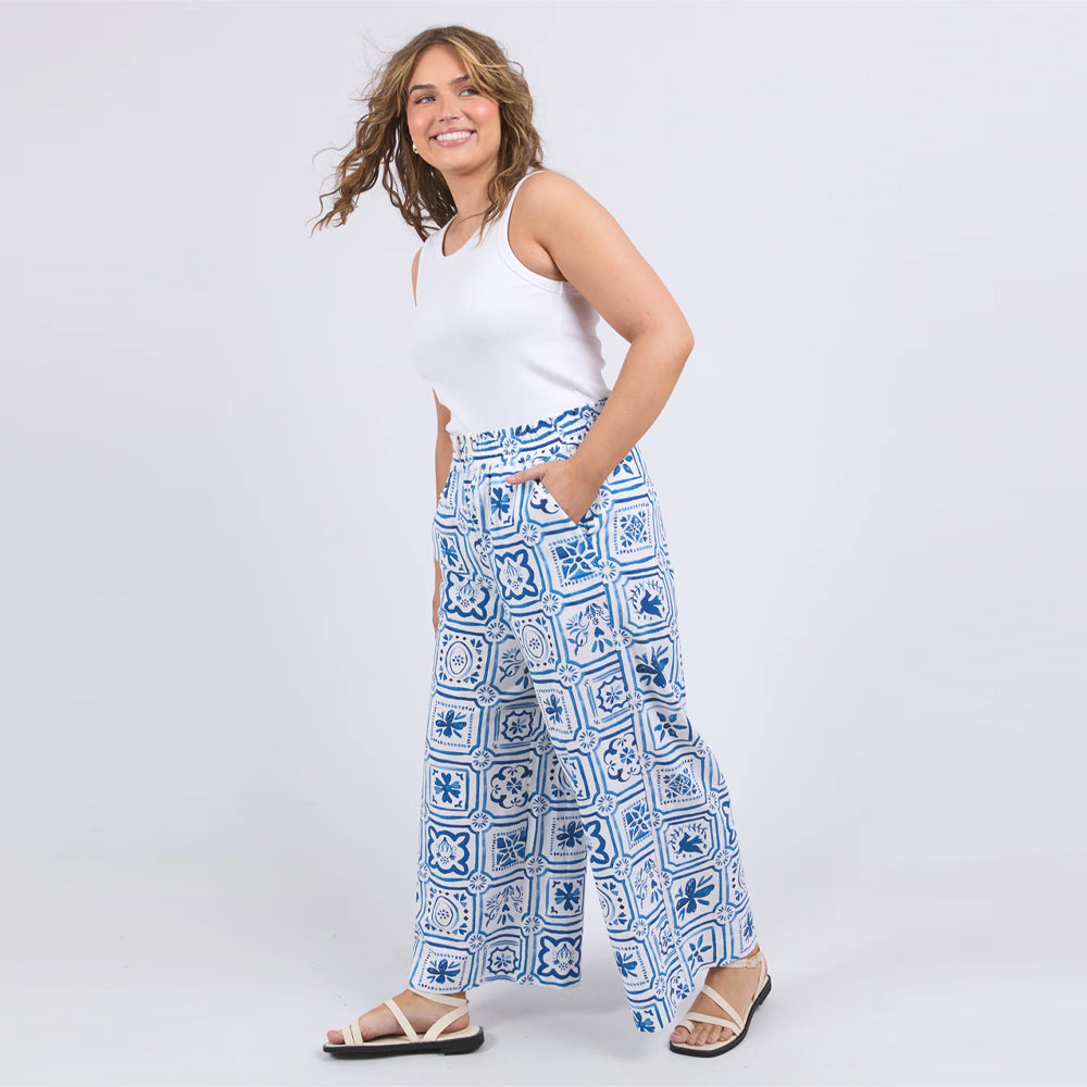 Introducing the Dolce Tile Pant (Elm Lifestyle Clothing) with it's fun exclusive print in ocean blue and white. Featuring relaxed fit, exclusive print and elastic waist. Pair with the matching Dolce Tile Shirt for a fun Spring set or style it a tank for a relaxed vibe.