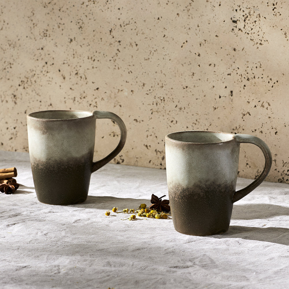 Made from stoneware with a stunning ombre glaze, the Dusk Stoneware Mug has a unique organic shape and varied brown and cream colouring. No two are alike.