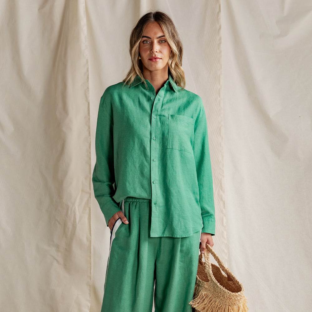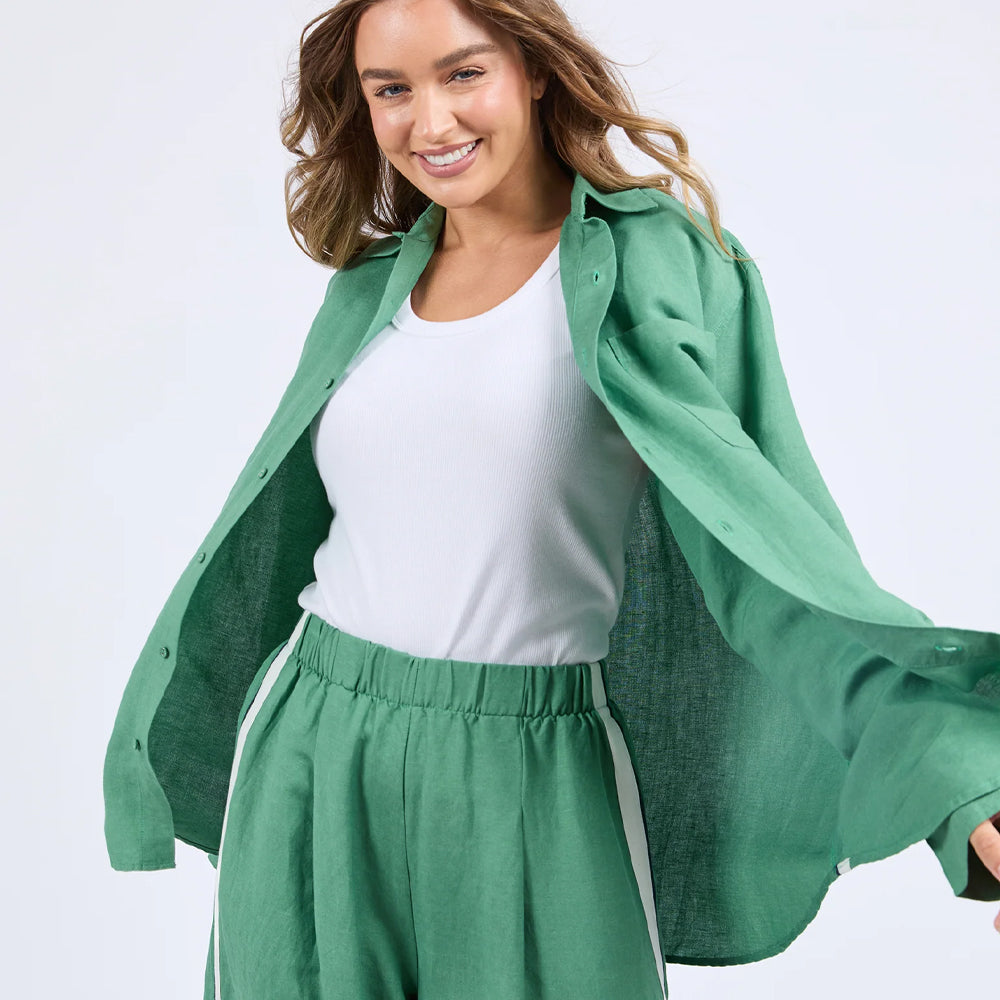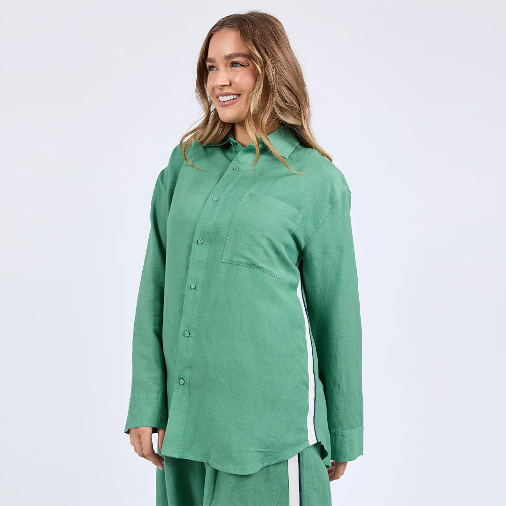 The Elemental Shirt (Foxwood Clothing) blends laid-back style with a sporty edge. Made from a breathable linen blend, it features classic buttons and collar, a handy chest pocket, and sleek side tape details for a modern twist. Easy to wear and made to move with you.