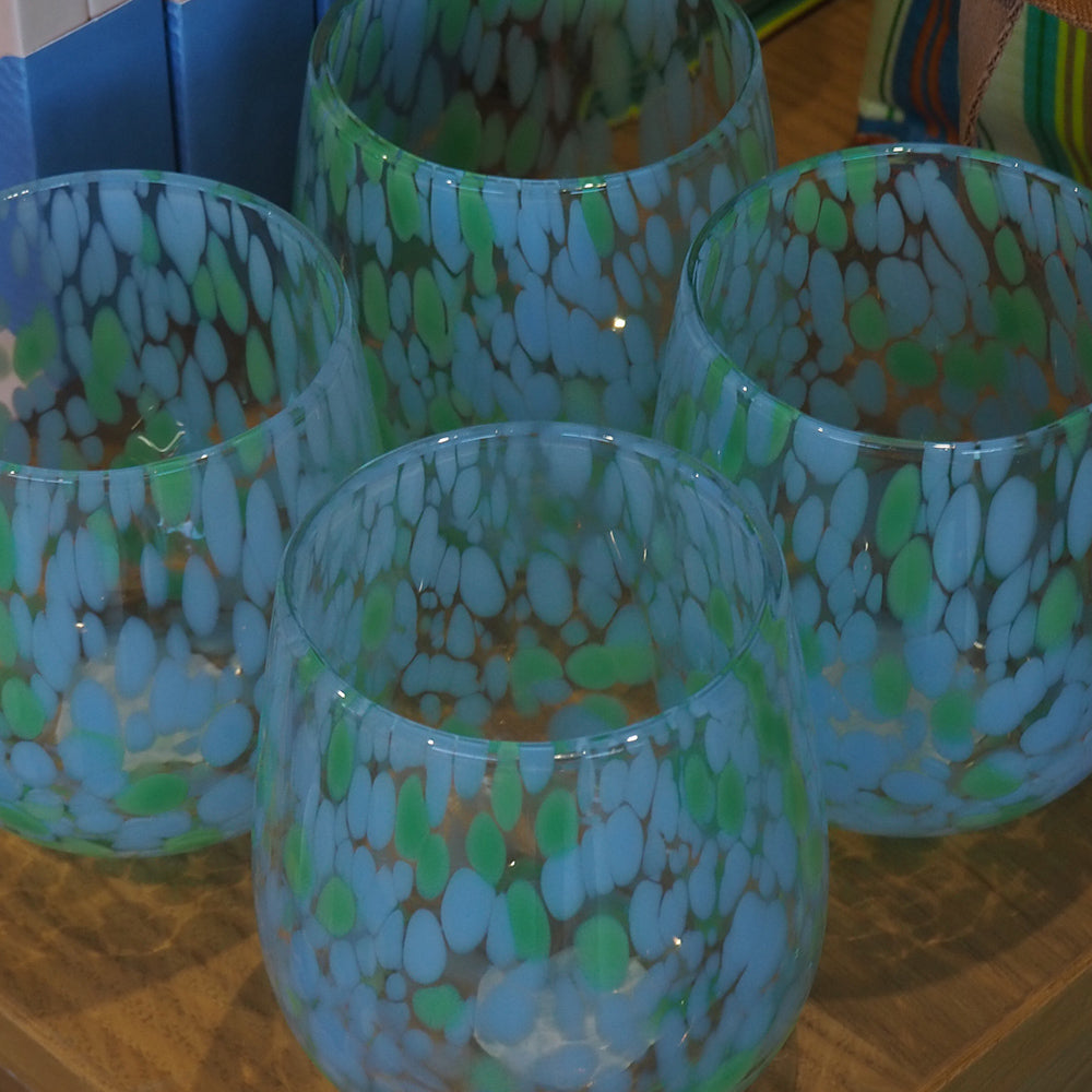 Splashed in speckles of blue and green, the Freckle Glass Tumbler is solid and stylish. The perfect vessel for the prettiest of cocktails or a cool drink on a warm day.