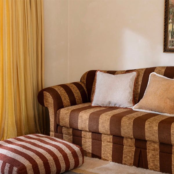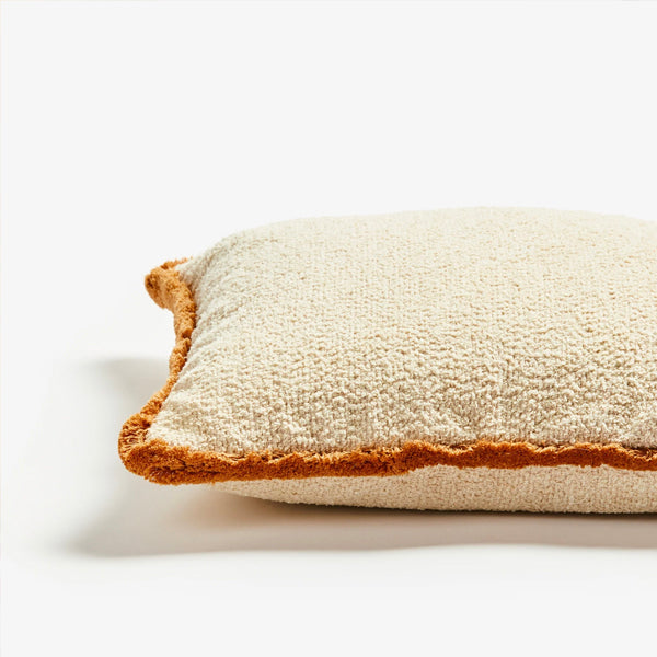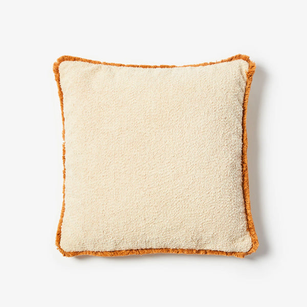 A versatile cushion in luxurious cream, our Bonnie & Neil Grain Cream Cushion is hand loomed from soft knotted cream cotton and adorned with a rich brown fringe trim.