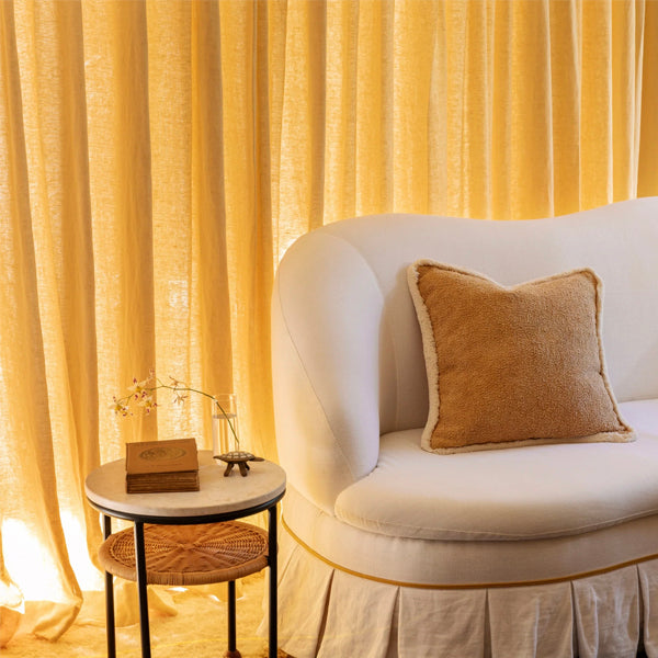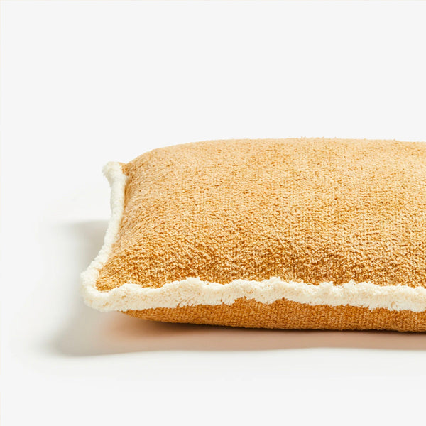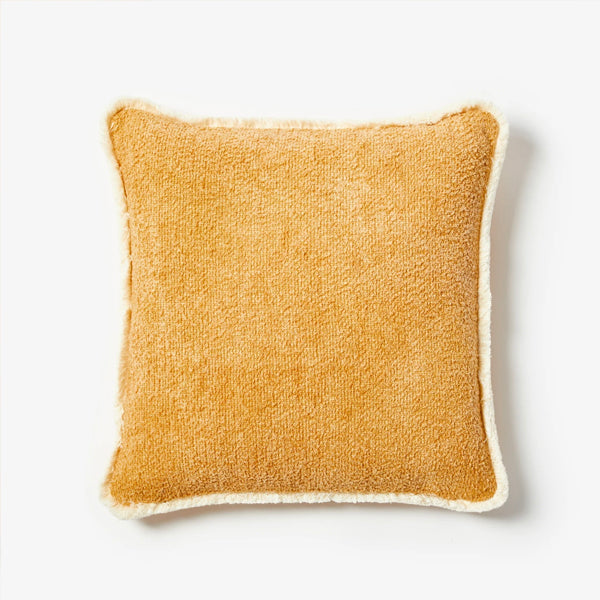 Hand loomed from soft knotted cotton and finished with a thick fluffy cream fringe, our Grain Tan Cushion is perfect for adding layers to your living or sleeping space.