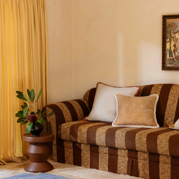 In a warm tone that works back with vibrant patterns and subtle prints, this classic cushion is a timeless addition to your home.