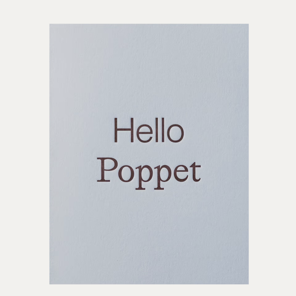 Welcome little one. Whether it be a new baby or fur child, say hello. Letter pressed by hand in deep burgundy copy on a lush, textured pale blue coloured stock.