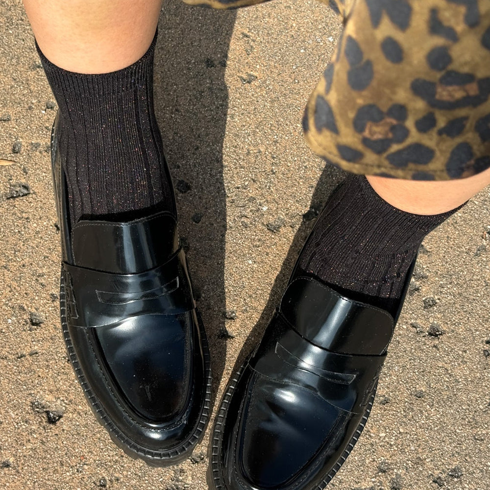 Now in a super soft and supple modal blend yarn, these are the perfect height ribbed socks with just the right amount of sparkle. We love seeing Her poke out of a coloured sneaker, or for those special occasions, we like to dress her with a silky dress and strappy heels.