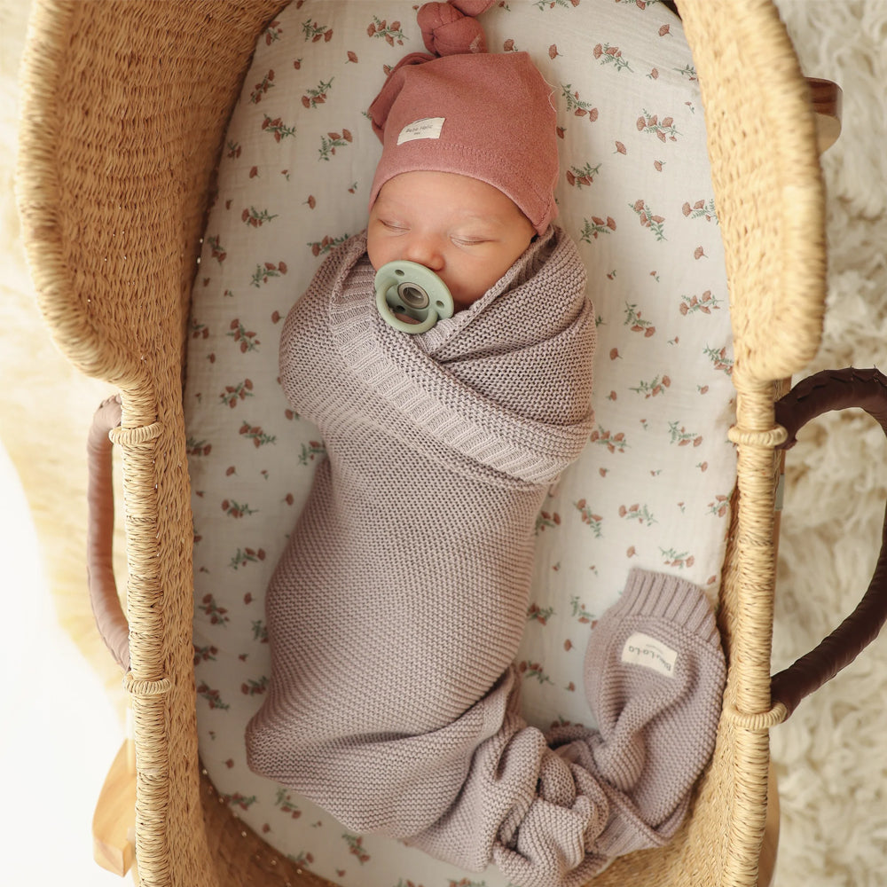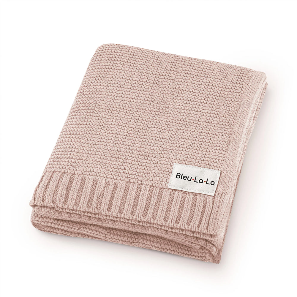 Crafted with 100% luxurious organic fine loomed cotton, this blush pink Heritage Knit Baby Blanket is tenderly soft, breathable, and gentle enough for newborn babies delicate skin.