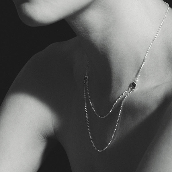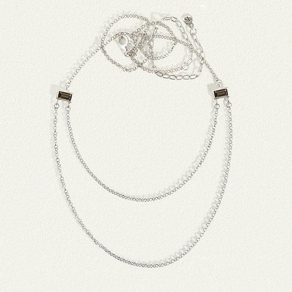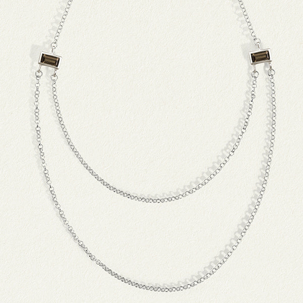 A statement necklace crafted from ethically sourced sterling silver, the Hermes Necklace is inspired by the divine messenger. Featuring twin rolo chains that cascade gracefully from baguette-cut smoky quartz, this layered necklace bridges realms, illuminating paths of knowledge.