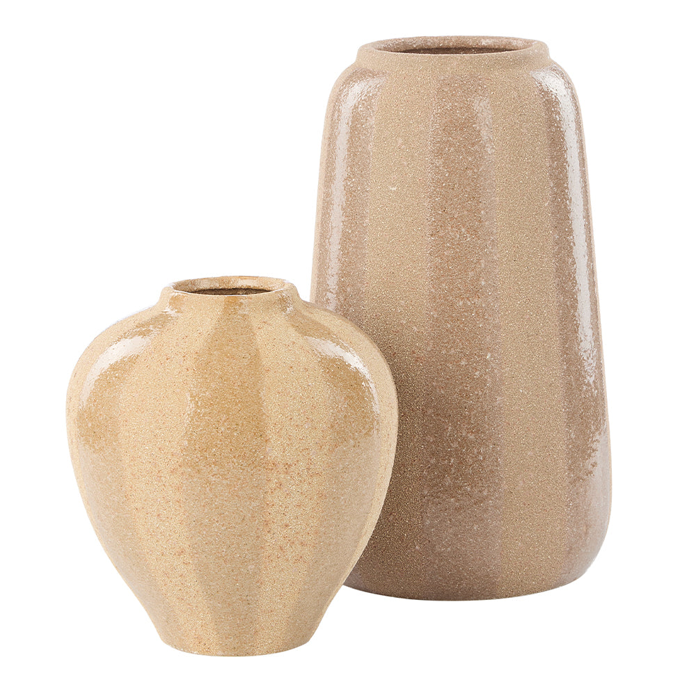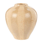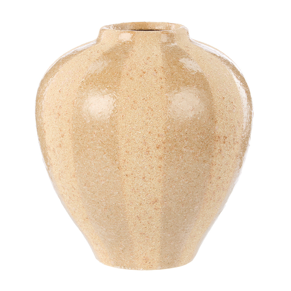 The small Hugo Ceramic Vase (Amalfi) is crafted from beautifully textured stoneware in a soft brown and tan striped glaze, in a round, tapered silhouette. Perfect to display both fresh and faux flowers in any corner of the home.