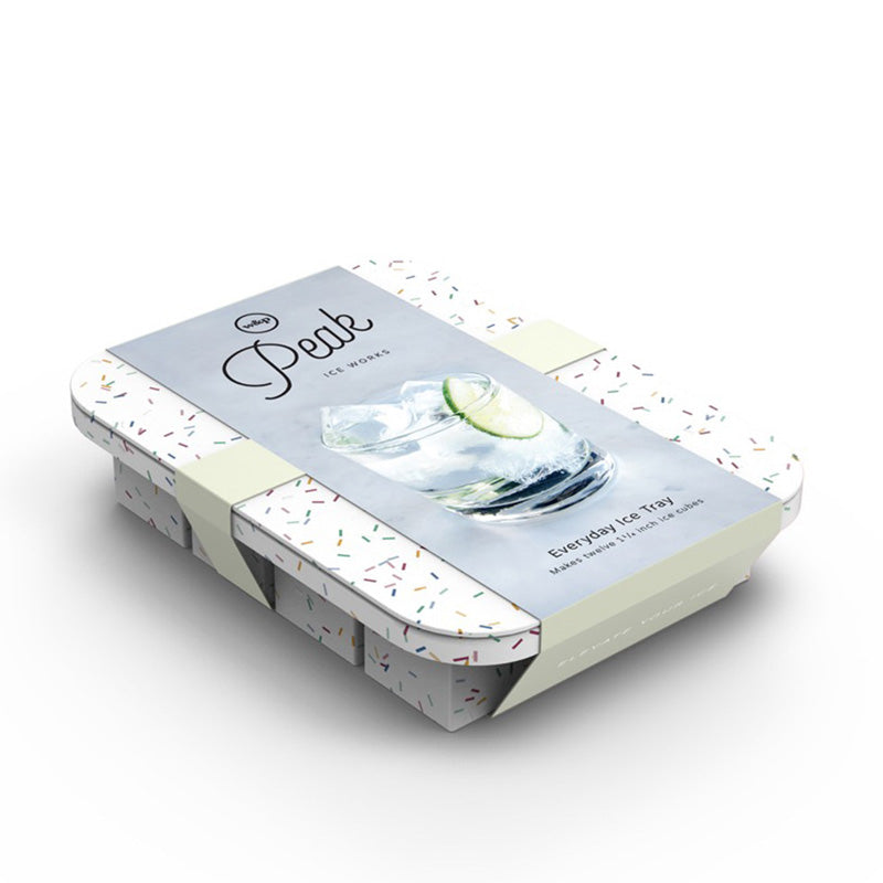 Elevate your ice with the Peak Everyday Ice Tray. This tray makes twelve ice cubes for your everyday beverage needs. The provided lid blocks out pesky flavours from your freezer, while an internal steel frame makes filling and transporting the tray a breeze.