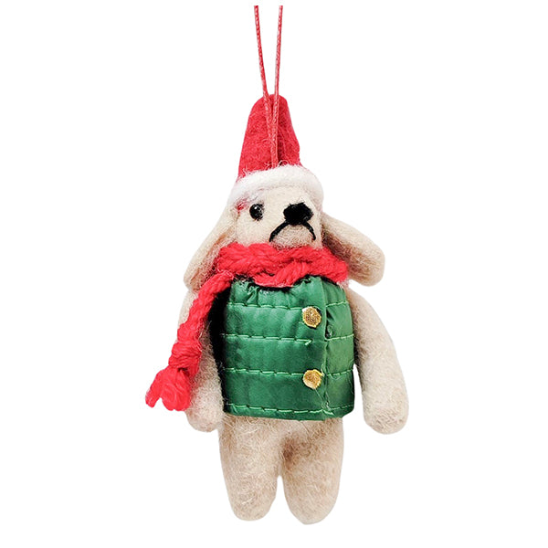 Decked in a Santa hat, scarf and his best puffer vest, this festive Dog is ready to hang with his other stylish friends.