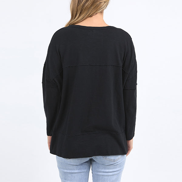 The Jayne Throw on Top from Foxwood Clothing is the perfect lightweight long sleeve to take you through the seasons. Cut from a comfy, cotton slub jersey this women's top features a crew neck, trendy exposed stitching and side split hi-low hem. Seriously versatile we know you'll be wearing this on repeat.