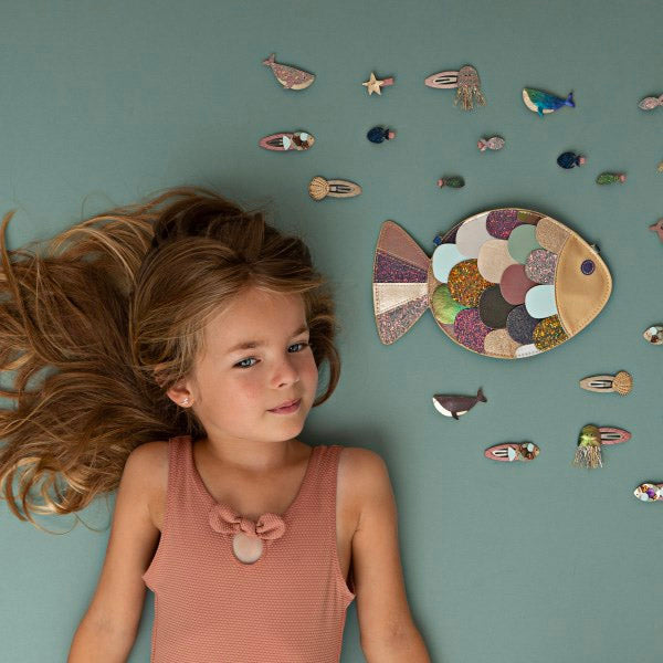 - Jellyfish crafted from irridescent and glitter leatherette fabrics with silver glitter tentacles