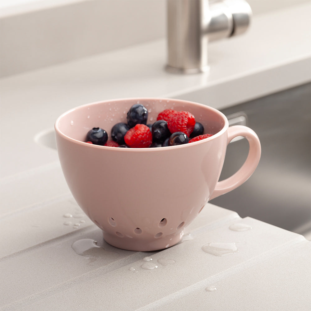 Crafted from melamine in a playful pale pink shade, it's the perfect size for cleaning and draining smaller ingredients or food portions, whilst the convenient handle gives you a one-handed hold when giving your favourite berries a quick rinse.