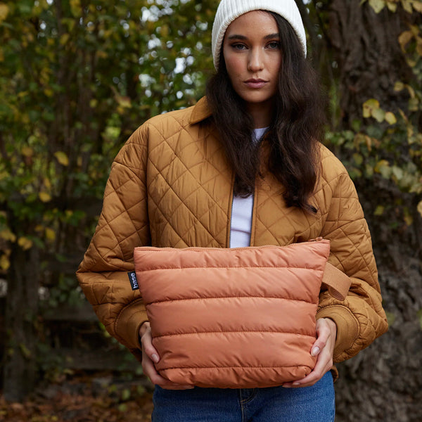 A soft-to-the-hand holder for all your cosmetics, toiletries and daily essentials. Crafted from a cloud-like fabric, this padded clutch is the perfect stuff-and-go bag for errands, lunch dates, gym days or weekends away. Practical for your everyday, the chunky zip closure keeps valuables contained and the sturdy cotton handle lets you hang or carry.