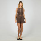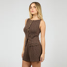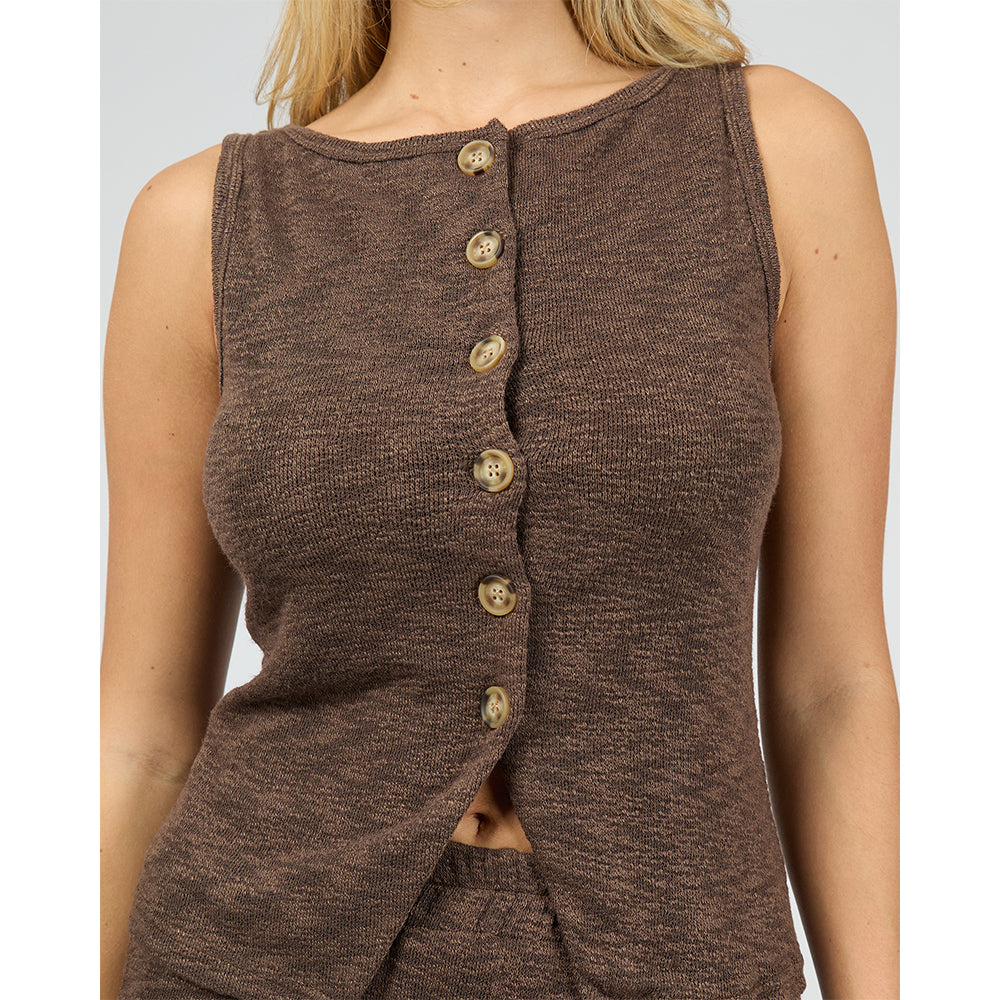 Love a top you can dress up and down... the Leonie Vest (Silent Theory Clothing) will become a wardrobe go to then! Made from a stretchy textured knit, this top features a button down front, v opening around hem and is fully lined. Pair back with your favourite denim and sandals for the easiest spring summers day look.