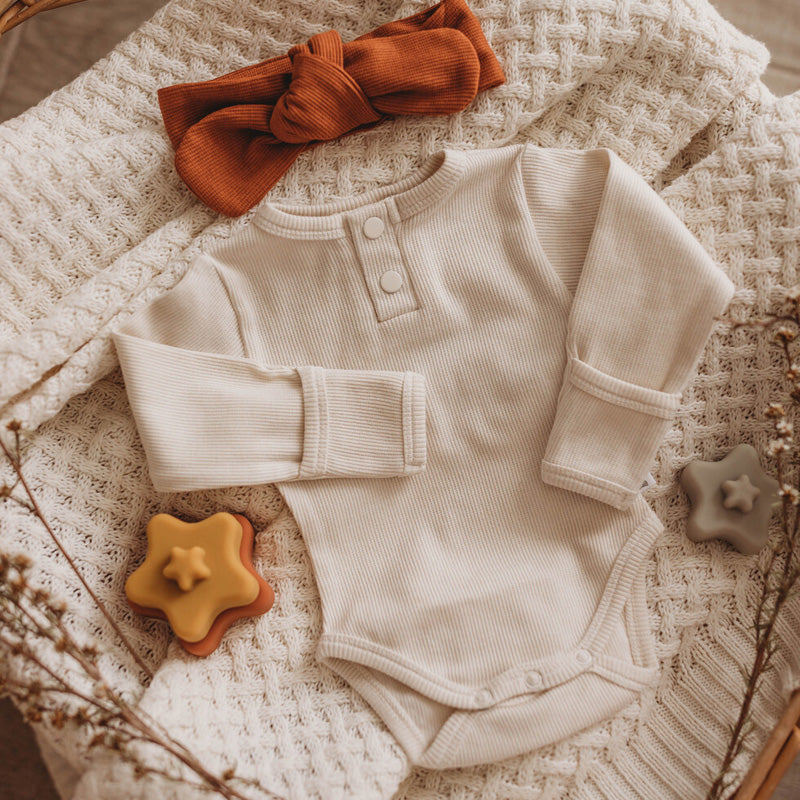 Made from high-quality GOTS certified organic stretch rib, our bodysuits are designed to withstand the tough life of play. You will fall in love with their fit, softness and versatility. We are certain they will become your favourite go-to!
