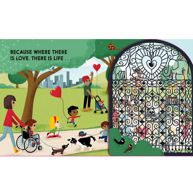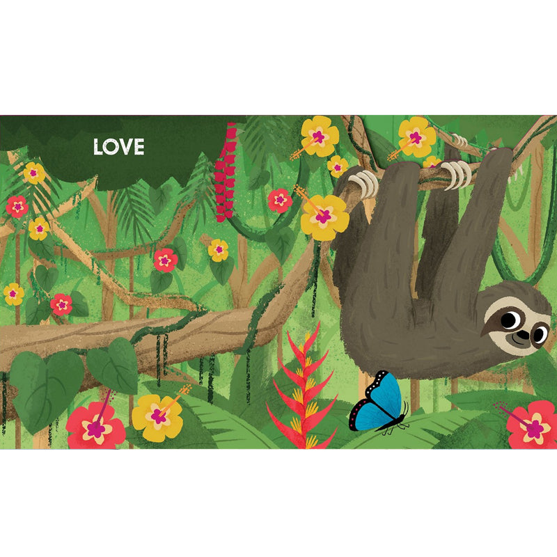 Animals show their love in so many ways This interactive board book, with its chunky, die-cut pages and surprise-filled gatefolds, is the perfect gift for anyone you love. Featured animals include elephants, sea otters, swans, giraffes, sloths, penguins, kangaroos, pandas, hippos, foxes, and golden eagles.
